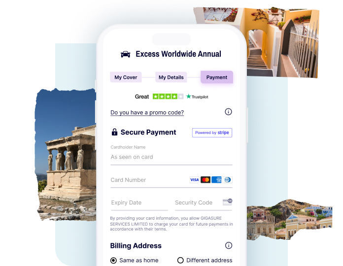 Financial Protection: Hiring a car in Greece usually comes with a built-in Collision Damage Waiver (CDW), but you’re still responsible for an excess of €1,000–€2,500 if the vehicle is damaged, stolen, or lost. Gigasure’s Car Hire Excess Insurance covers that financial risk, helping you avoid large out-of-pocket costs and giving you peace of mind throughout your trip.