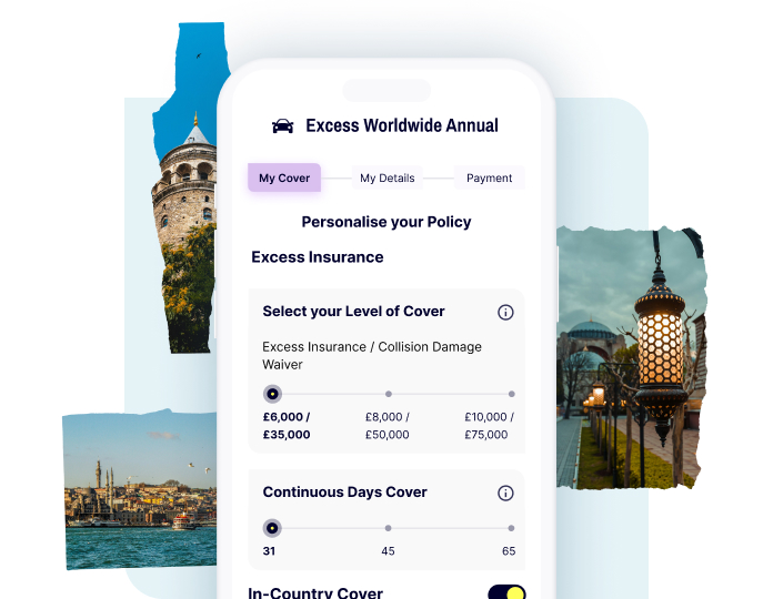 Our flexible Single Trip and Annual Multi-Trip options let you choose cover that matches your travel frequency to Turkey. Gigasure's Car Hire Excess Insurance eliminates costly excess charges from vehicle damage, theft, or loss, ensuring your Turkish adventure stays both affordable and stress-free.